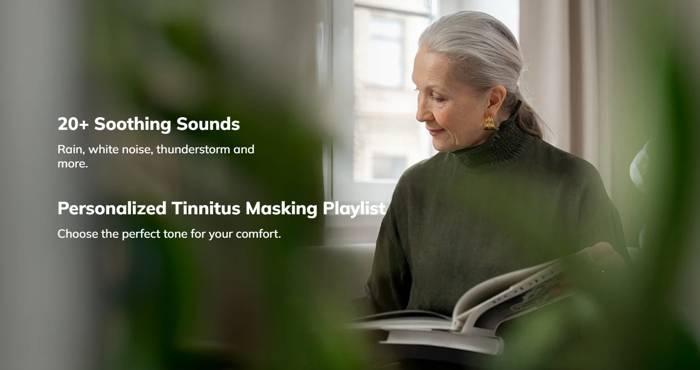 Struggling with ringing in your ears? NESLEMY™ offers over 20 built-in options to help mask tinnitus and create a soothing listening experience.